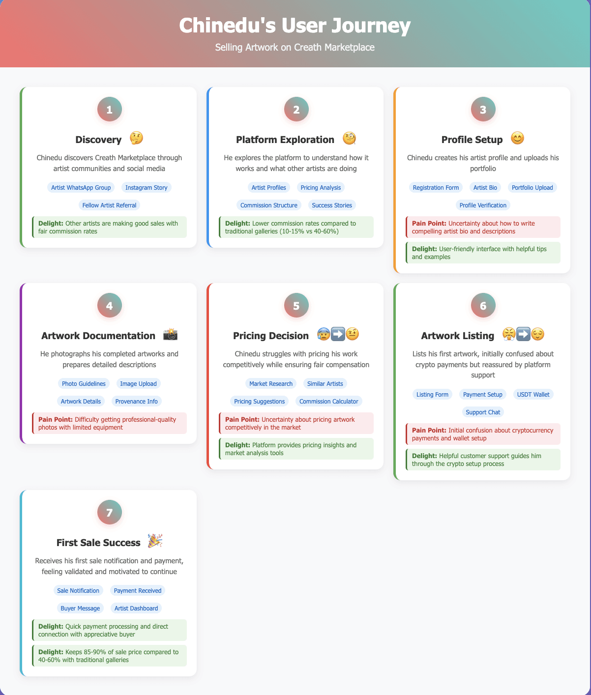 Competitive Analysis: Analyzed 5 existing online art marketplaces (both local and international) and 3 cryptocurrency-based marketplaces to identify best practices and potential pitfalls.
